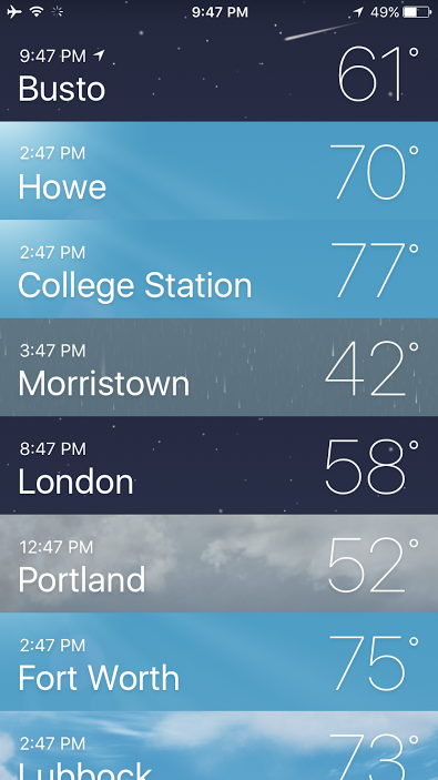 So obviously most of these cities aren't close to me but that's because it's where my loved ones are. I do like to know what's going on in those cities and also be aware of tornado weather because....Texas. Obsessed? Won't deny it! I have another list below this screenshot of many more cities that I'm going to visit soon or have been to.
